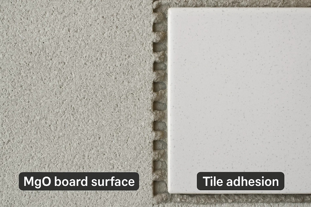 Mindkét tábla kiváló felületeket biztosít a csempe tapadásához. A legfontosabb különbség a módszerben rejlik. A Cementtábla porózus jellege lehetővé teszi, hogy a vékony habarcs mechanikusan kötődjön, amikor a felszínre gyógyul. Egyes gyártók azt javasolják, hogy a felület alapja az abszorbencia csökkentése és a vékony beállított kiszáradás megakadályozása érdekében, ami gyengítheti a kötést. Az MGO Board sima, sűrű felülete erős kémiai kötést biztosít a vékony szetűvel, biztosítva, hogy a csempe biztonságosan és évekig tartjon.