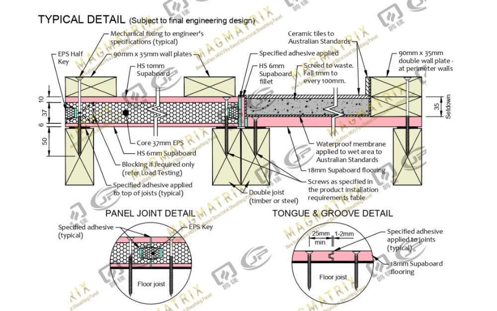 Ezeket készítettük MGO aljút -panelek A magnézium-oxid nem organikus ásványi anyagokkal és adalékanyagokkal kombinálásával. Az üvegszálas hálóval megerősítik őket, hogy hosszabb ideig tartsák őket. A legtöbb építész 3/4 "vastag szerkezeti paneleket választ-csak az erős, tartós padlókhoz. A panelek a nyelv-és horony széleivel vannak rögzítve, ami elősegíti a súly egyenletes terjedését és a padló stabilitását tartja.